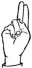 На ћирилици написано АЛЕН РАДУШКИ састоји се из 11 слова [?]. Исписано ћириличном једноручном азбуком за глувонеме: